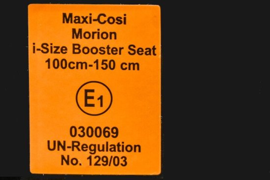 - Het goedkeuringslabel is een oranje sticker die op elk kinderzitje kleeft. Daarop lees je de belangrijkste veiligheidsinformatie. Het is een internationaal veiligheidskeurmerk.